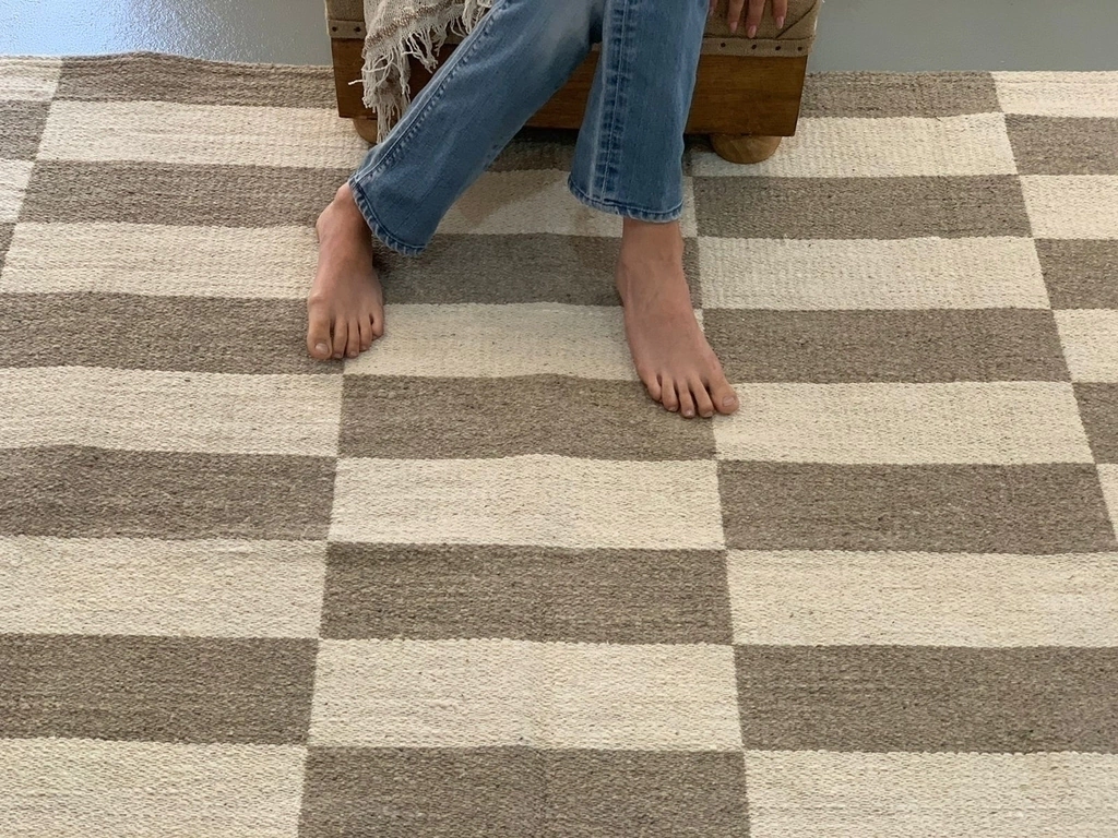 Alfombras Damero: Línea de alfombras tejidas en telares artesanales a partir de fibras naturales, lana y algodón. Tejido lavable 100% en lavarropas (con agua fría y lavado delicado)