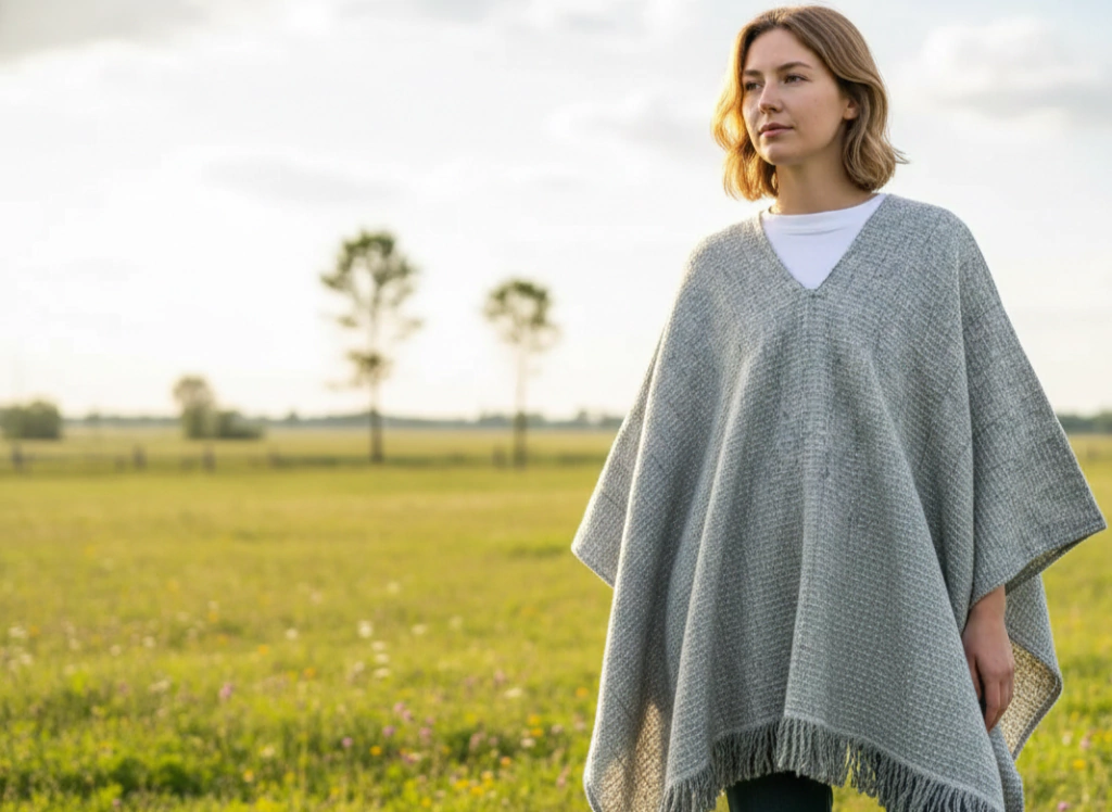Ponchos tejidos artesanalmente en Telar en lana recuperada.