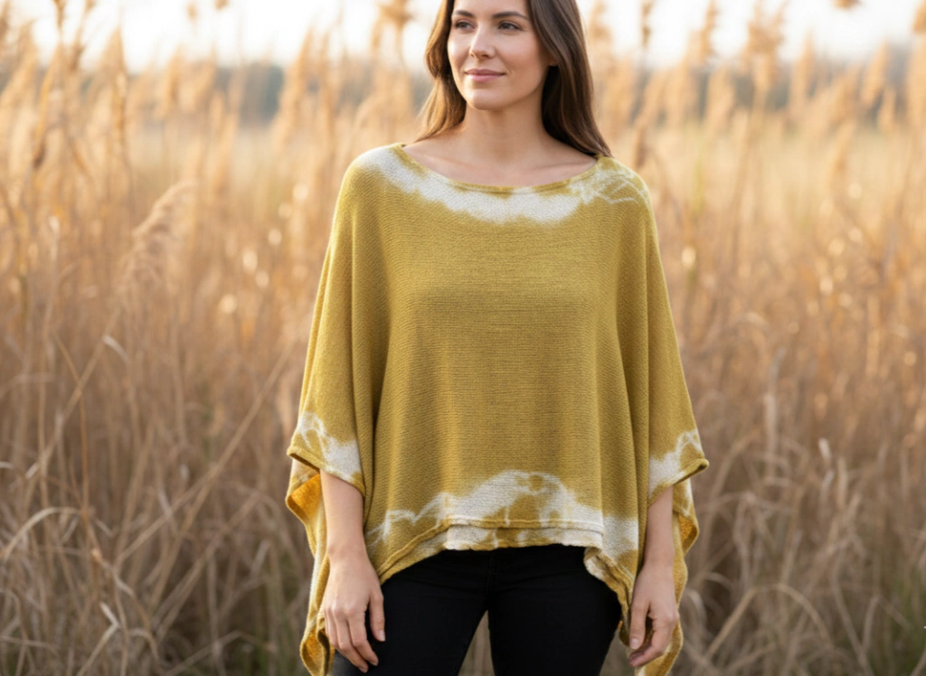 Prenda única e irrepetible, realizada con tinte de cebolla. Medidas aproximadas: 60cm de largo desde los hombros, 1.40 de ancho total.